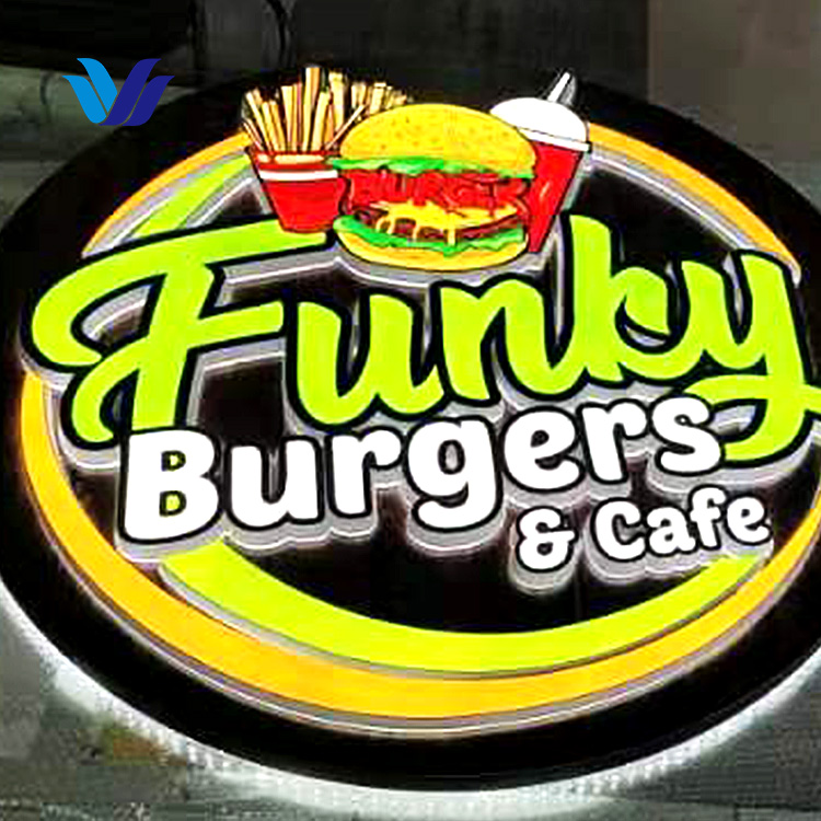 HONGSEN özel açık akrilik restoran cafe anime dükkan için led ışıklı işaret led ışık kutu tabela